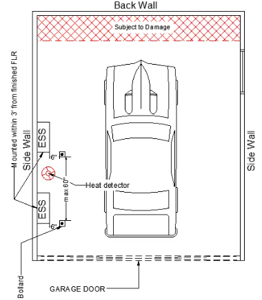 Exception: Where the clear height of the vehicle garage opening is 7 feet 6 inches (2286 mm) or less, ESS installed not less than 36 inches (914 mm) above the finished floor are not subject to vehicle impact protection requirements.